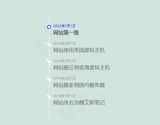 下图是老魏在默认主题中添加的时间轴,效果比较简单,供大家参考。