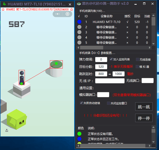 电脑微信跳一跳2.0源码附成品Ferry46天前更新关注私信01410电脑微信跳一跳2.0源码附成品此内容为付费资源,请付费后查看¥1大会员¥0.5超级大会员免费立即购买您当前未登录!建议登陆后购买,可保存购买订单付费资源 支持使用USB、WIFI无线、以及模拟器 、多设备连接跳跃,设置好弹力微调参数几千分没问题 WIFI无线连接要在一个局域网环境下,先使用USB数据线链接然后选择无线连接 成功后就可以在断开WIFI前都使用无线连接就行跳跃了(设置IP和端口默认5555、模拟器IP无效端口有效) 注意安装安卓驱动360驱动之类的安装就行了,当然一定要开启USB调试,有的手机要开启允许模拟点击 THE END网站源码 喜欢就支持一下吧点赞10赞赏 分享QQ空间微博QQ好友复制链接收藏