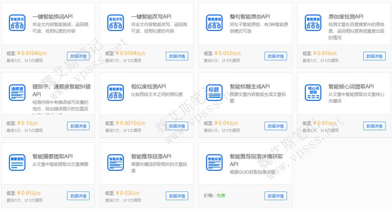 - 原创度检测API:检测文章在百度搜索的原创度,返回相似度高或重复出现的情况;