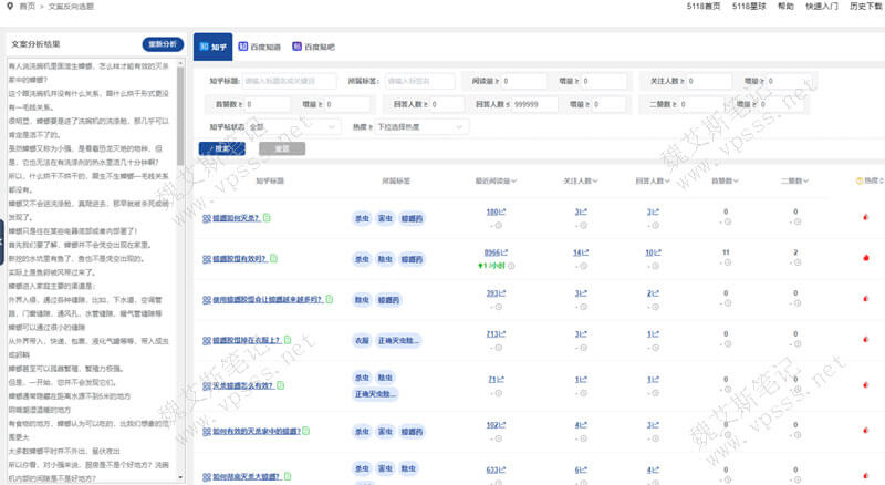 5118文案反向选问题功能,基于5118大数据分析,从已有文案内容中快速、自动的找到“知乎、百度知道、百度贴吧”这些平台中合适回答的问题。