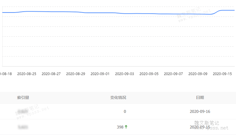 从百度站长平台的索引变化情况来看,如下图所示当天就直接上涨了近400条索引记录。之前网站索引从 8月中旬开始一直在下降,每天跌几十条、近百条,虽然原创也抵挡不住下降的趋势。到了 9月10日干脆就不更新索引了,后来就是主动反馈问题。