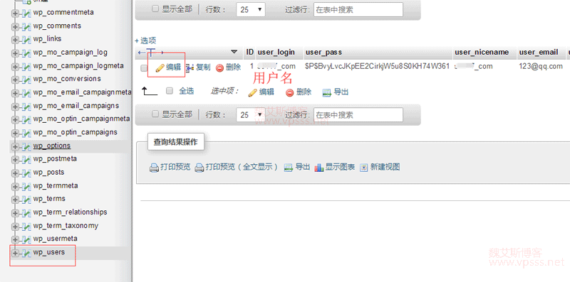 在对应的数据库中找到 wp_users 字段,右侧找到管理员用户名,点击编辑,修改 user_login 字段的值,最后保存就可以了。