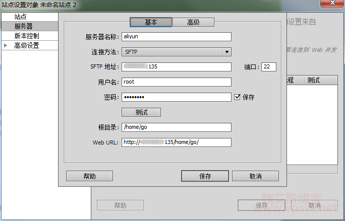 连接方法:一般用的 FTP 或者 SFTP,老魏这是用的 linux 服务器的 root 账号连接,所以选择 SFTP,如果是 windows 服务器就是 FTP 了。