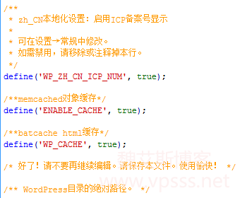 2、在 wp-config.php 中添加启用缓存的命令:
