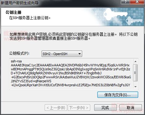 3、点击下一步,把密钥另存为文件保存到本地电脑。这个是公钥。