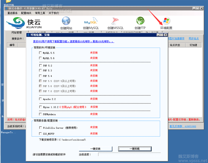 魏艾斯博客曾经写过有关 windows 服务器部署 web 环境的文章,比如windows VPS 中如何用网站管理助手建立网站和数据库使用的西部数据网站管理助手;国内目前最好用的宝塔面板,windows VPS 用宝塔网站助手建立网站和数据库,这些都是 windows 服务器中常见的搭建环境工具。本着尝试更多工具软件的目的,今天老魏来介绍下快云小助手(又叫快云管理助手)windows 服务器快速部署 web 环境的过程。