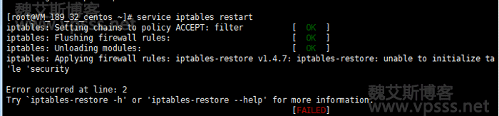 今天魏艾斯博客修改 centOS6.8 的 iptables 的时候,重启后提示如下错误:
