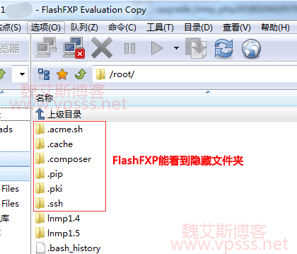 后记:魏艾斯博客也下载尝试了一下 FlashFXP 这个同类软件,就可以直接看到这些隐藏文件夹了,如果你用的是 FlashFXP 也不必有这样的担心。