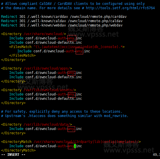 下面需要切换到纯英文状态下修改代码。点击键盘 a 字母,编辑器中出现 INSTERT 字样,配合上下左右方向键,如下图红框所示(已经替换完了),替换之前是 local 和 one,都换成 any。
