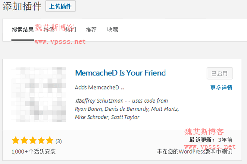 去 wordpress 后台插件搜索 memcached is your friend 并安装。插件在 wp-content 目录下会自动生成 object-cache.php 文件,并调用它作为 WordPress 对象缓存机制。