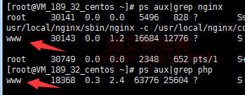 用 ps aux|grep nginx 查得 nginx 是以 www 运行的。而通过 ps aux|grep php 查得 php 也是以 www 用户运行。