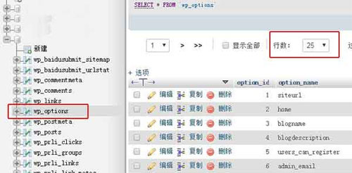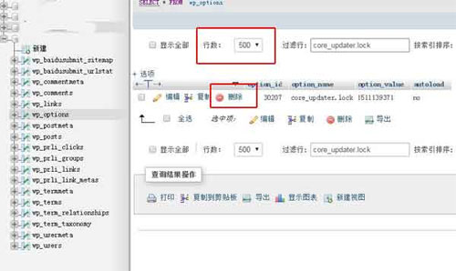 打开 phpmyadmin,左侧点击 wp-options,默认显示行数是 25 行这样找不到 core_updater.lock。