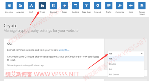 关于网站打不开,就涉及到 cloudflare 的 SSL 总共四种模式:off、Flexible SSL、Full SSL、Full SSL (strict)、Strict (SSL-Only Origin Pull)。含义解释如下: