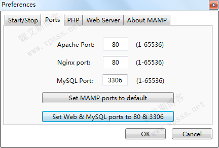 端口一般 MySql 使用 3306,Apache 使用 80。前提是 80 端口没有被占用;如果被占用了就改一个不常用的端口吧。