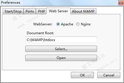 选择 Apache 或者 Nginx 服务,点击 select 选择网站文件根目录。