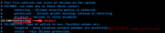我使用 linode 的 CentOS6.8,返回结果是 Disabled。如果返回结果不是 Disabled,那么修改/etc/sysconfig/selinux 文件,将 enforcing 改为 disabled,重启服务器。如已经是 disabled 则直接重启服务器。