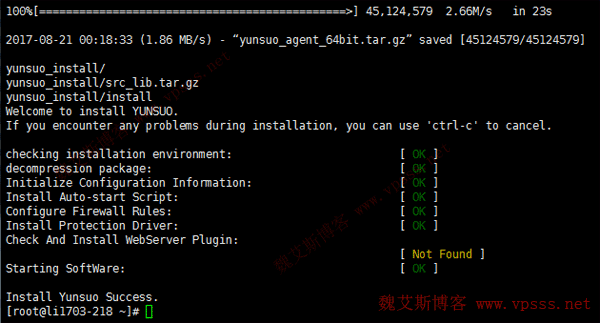 wget https://download.yunsuo.com.cn/v3/yunsuo_agent_64bit.tar.gz && tar xvzf yunsuo_agent_64bit.tar.gz && chmod +x yunsuo_install/install && yunsuo_install/install