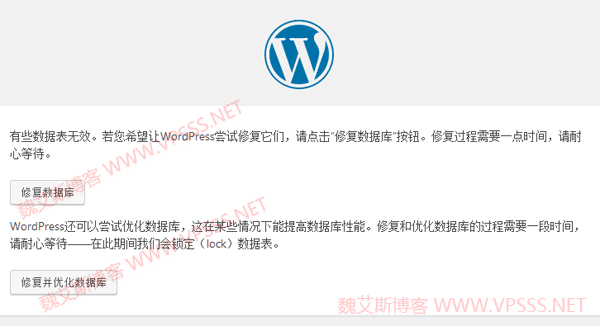 那么我们就照做呗,在网站根目录下的 wp-config.php 文件的“/* 好了!请不要再继续编辑。请保存本文件。使用愉快! */”前面,添加下面的代码即可。添加完上面的语句,把文件上传到根目录覆盖源文件,然后刷新本页。看到提示“修复数据库”,那么就点一下呗,很快就提示成功了。