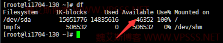 在修复数据库连接问题的同时,无意中发现这个网站的磁盘空间占用 100%了,捎带给清理了一下。这个网站里面高清图片多,光网站数据就 2G 多,站长把备份都放在 VPS 上了,看磁盘 15G 占用了 14.8G,哪里还有空间了。