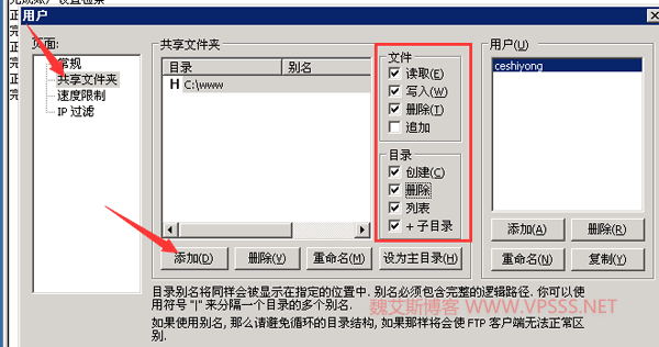 最后点击共享文件夹添加目录及设置权限。